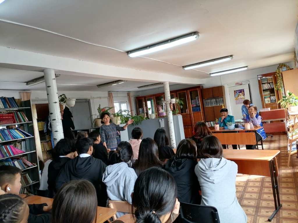 С целью воспитания у обучающихся уважения к представителям старшего поколения, ко дню уважения и почитания пожилого человека, совместно с заведующим музея Когель О. Ч. 29 сентября провели встречу с ветеранами культуры, среди 8 классов школы. Приглашённые гости Монгуш Оюмаа Самбуудайевна-ветеран библиотечного дела и Сагды Алдын-оол Кужугетович Заслуженный работник культуры РТ. Оба всю свою жизнь посвятили воспитанию духовной и культурной жизни молодого поколения. Ребята с большим интересом слушали об их жизни, о выбранной им профессии. Послушали песню » Как молоды мы были» и сыграли с гостьями в мини-викторину. После встречи гости посетили музей школы и закончили чаепитием, со сладостями. Охват: 32 учащихся.