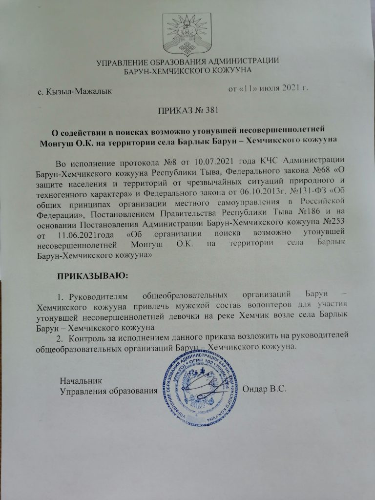 Приказ по сайту